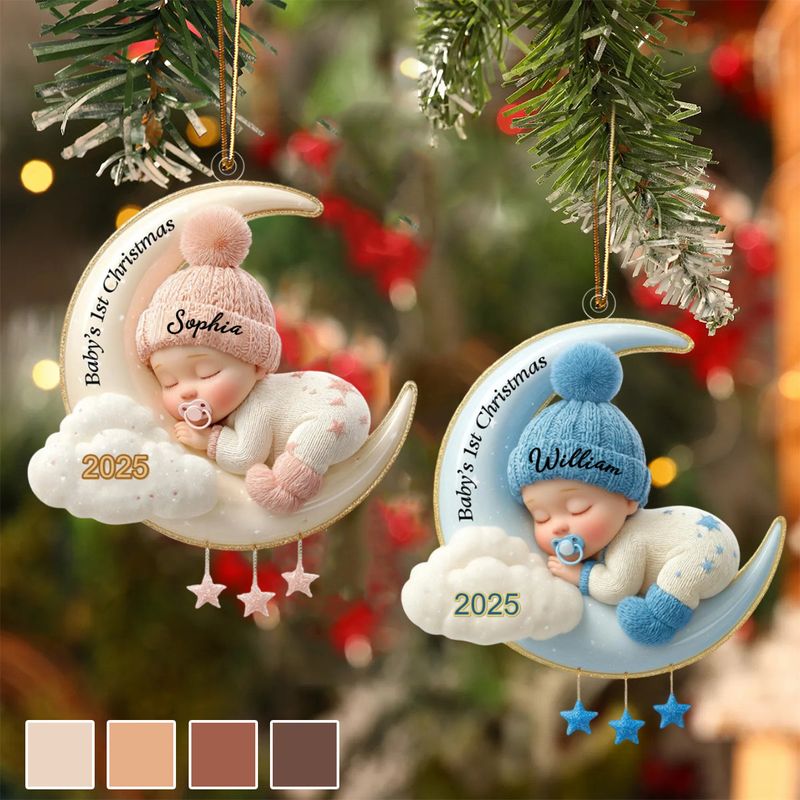 - 1 x Individuell gestalteter Weihnachtsschmuck für Babys erstes Weihnachtsfest, 3D-Mond aus Acryl als Erinnerungsstück